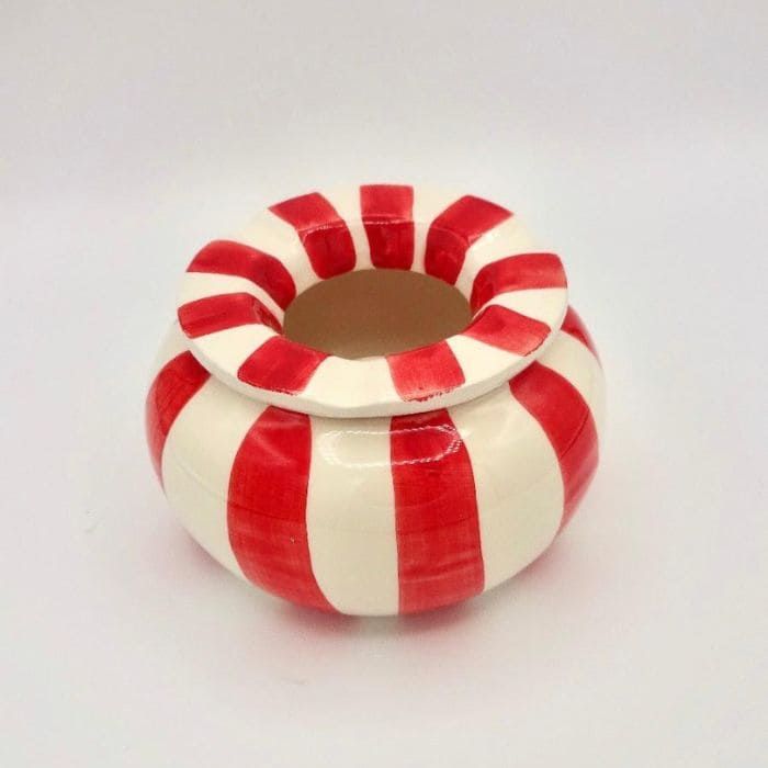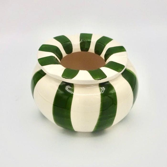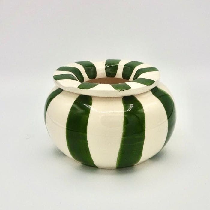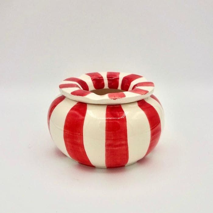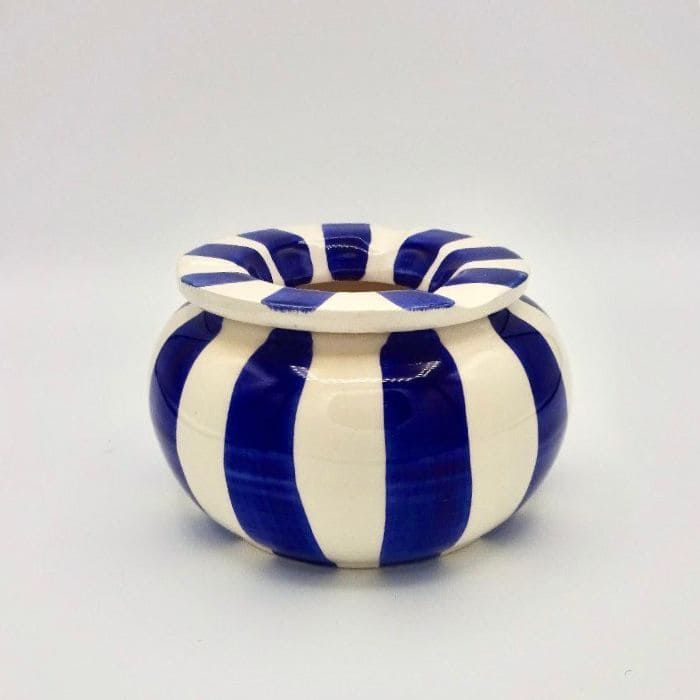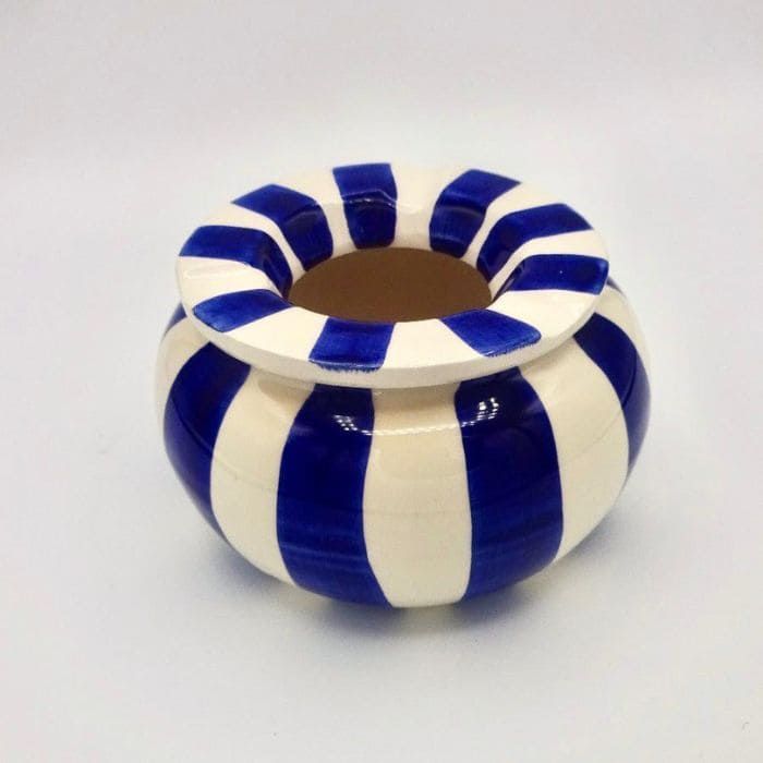 Cenicero hecho y pintado a mano en nuestros talleres de Portugal. Introduce un poco de agua en el interior del cenicero y así evitaras los olores de tabaco al apagarse. Aunque no seas fumador este tipo de ceniceros pueden ser también un elemento decorativo para cualquier terraza o jardín .