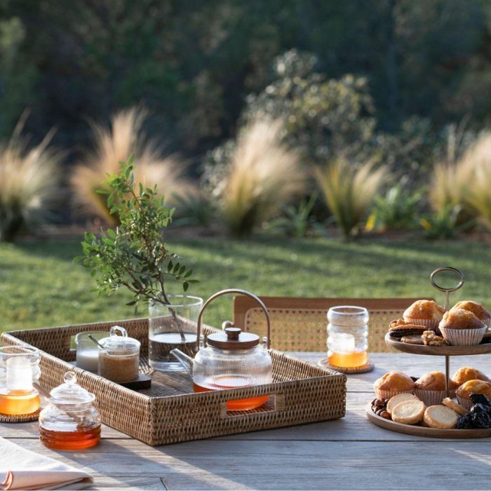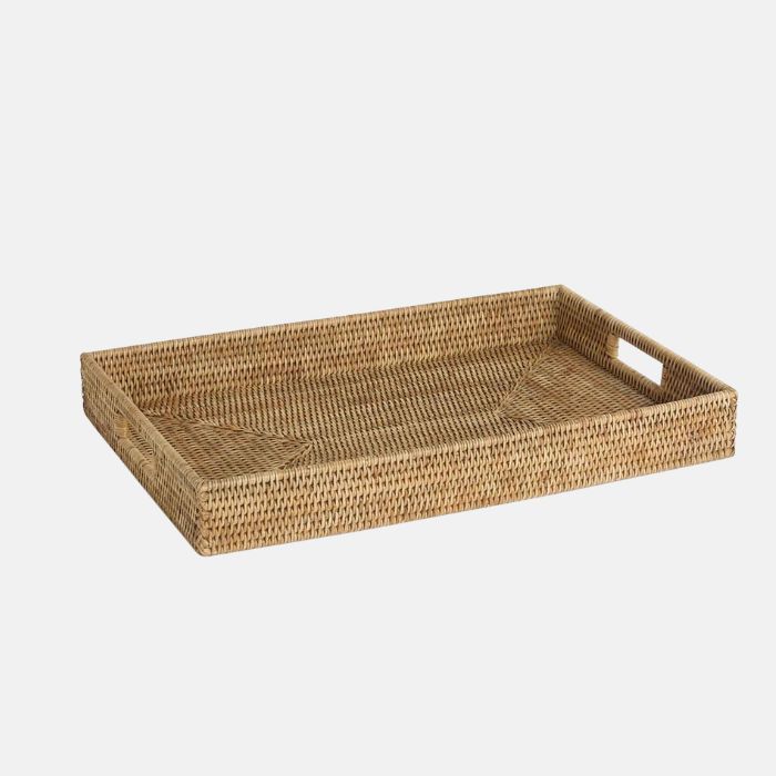 Bandeja grande con asas realizado en ratán. Ideal para lucir en aperitivos o para servir la mesa.Hecho a mano.