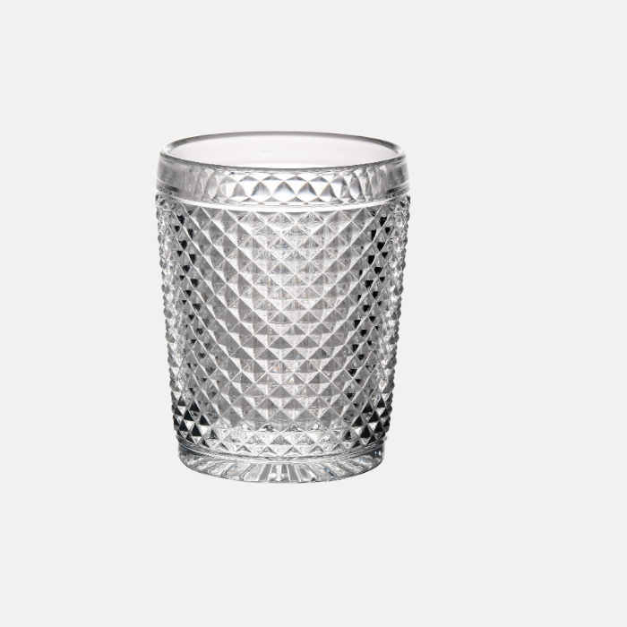 Un clásico diseño de la casa portuguesa Vista Alegre. El vaso bajo es ideal para el aperitivo o para combinar en una mesa como vaso de agua. Realizado en vidrio muy resistente.