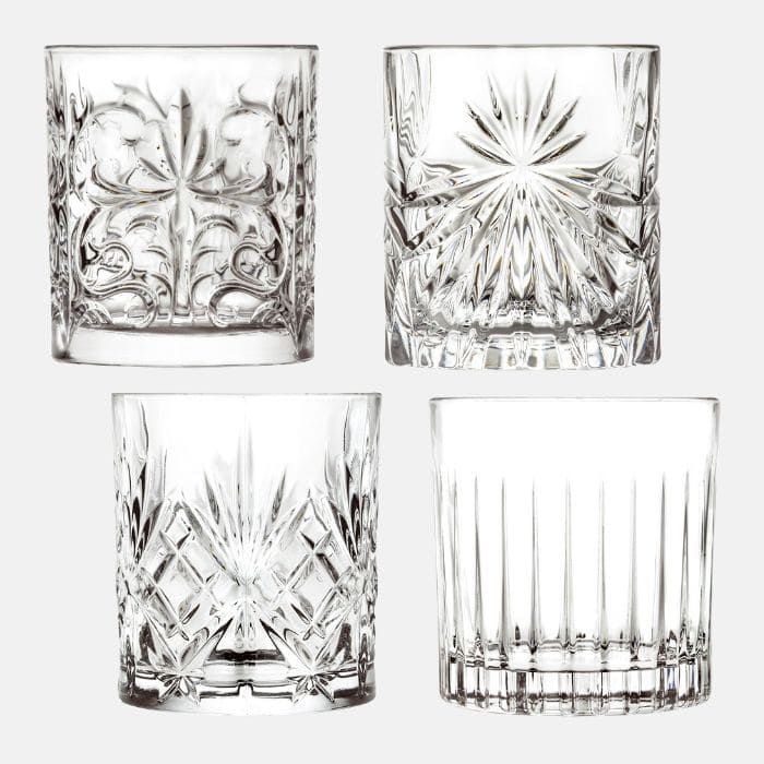 p> Colección de vasos bajos para whisky o otros cocteles. Disponible en 4 modelos diferentes para mezclar entre ellos.