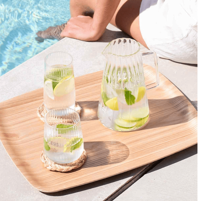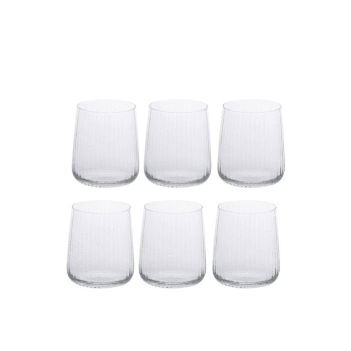 Set de 6 vasos bajos para agua o zumos. Están hechos a mano con cristal soplado. Tiene a juego el vaso alto.