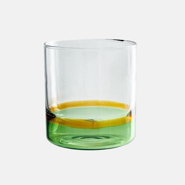 Encuentra vasos diferentes para tu mesa, estos con raya de bicolor en verde y castaño son ideales y diferentes.