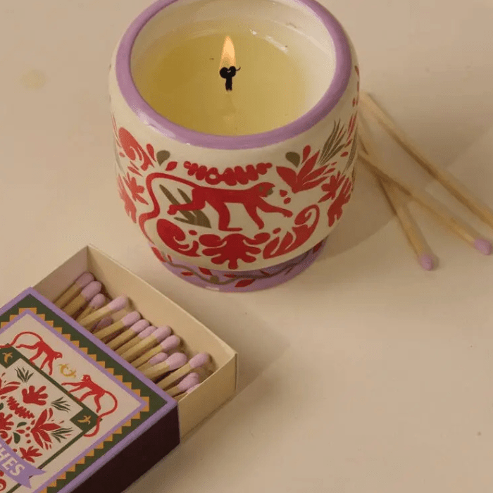 Caja de cerillas con estampado original y toque pop, ideal para tener siempre a mano o para regalar. Cada diseño es distinto y lleno de color, perfecto para añadir un detalle divertido y decorativo al hogar. Contiene 75 cerillas de buena calidad, presentadas en una caja que es tan bonita como práctica.