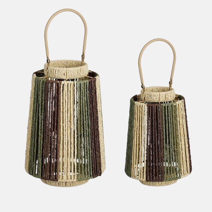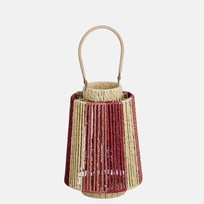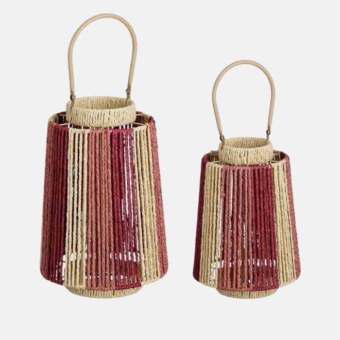 Candiles para velas disponible en 2 tamaños. Los hay en tonos verdes con beige o en tonos fresa con beige. Ponlo en tu en tu terraza de verano o de decoración en el interior de casa .