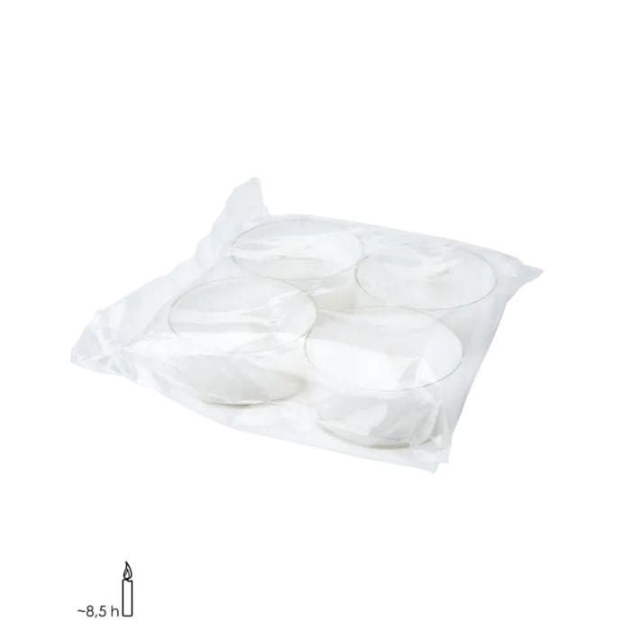 Las velas té son fantásticas para los porta velas de menor tamaño. Lo mejor de este set de 4 velas es que tienen un tamaño más grande que permite iluminar más, y tiene una duración más largas que las velas porta té habituales. Duración aproximada de 8,5 horas