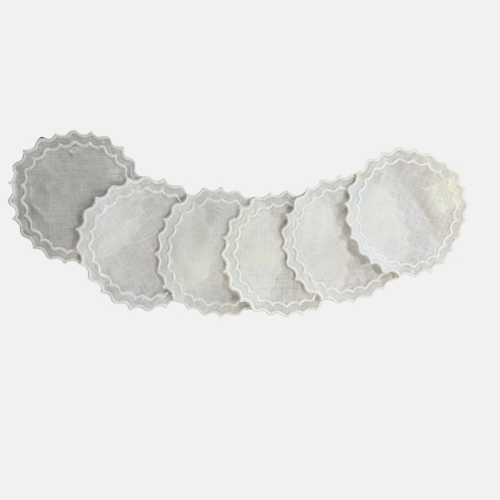 Un elemento esencial en cualquier que da vida a cualquier mesa. Set de 6 pañitos de pan de 10cm. Se pueden usar también como posavasos.