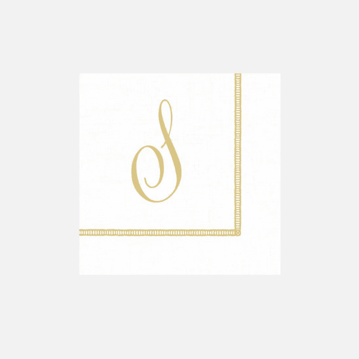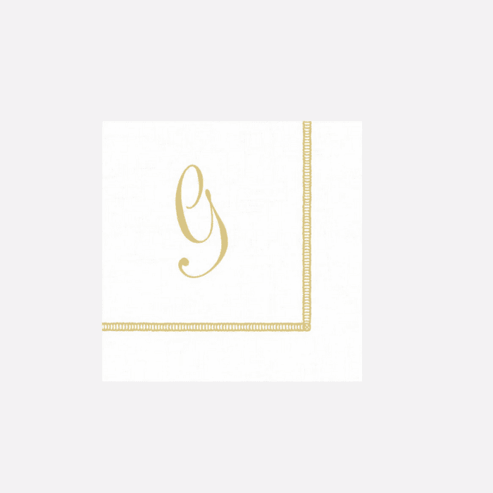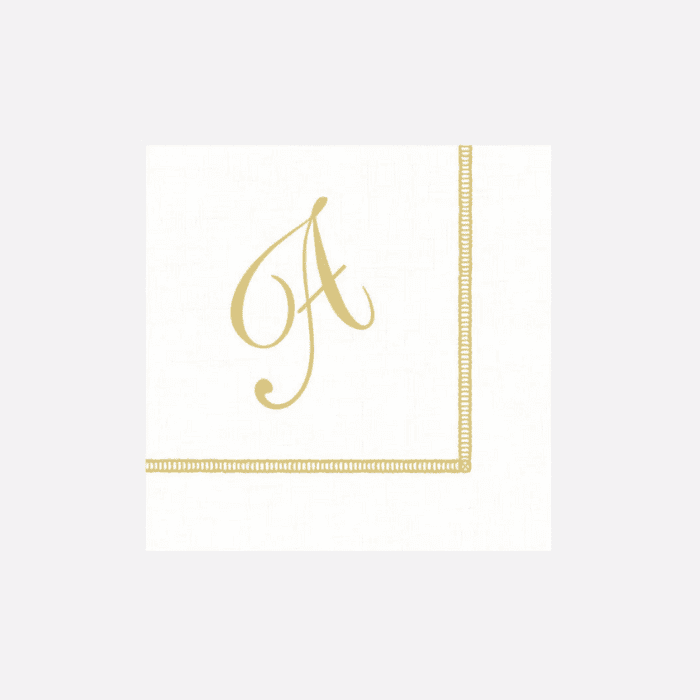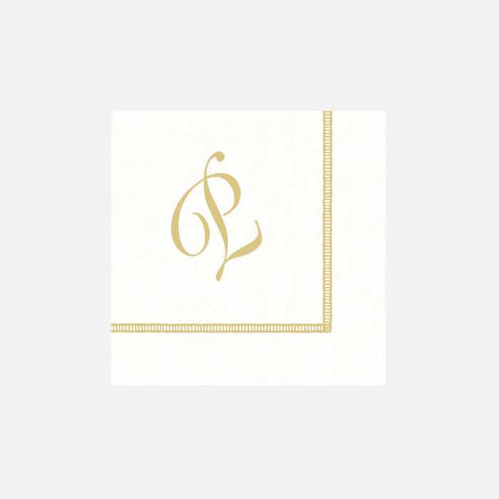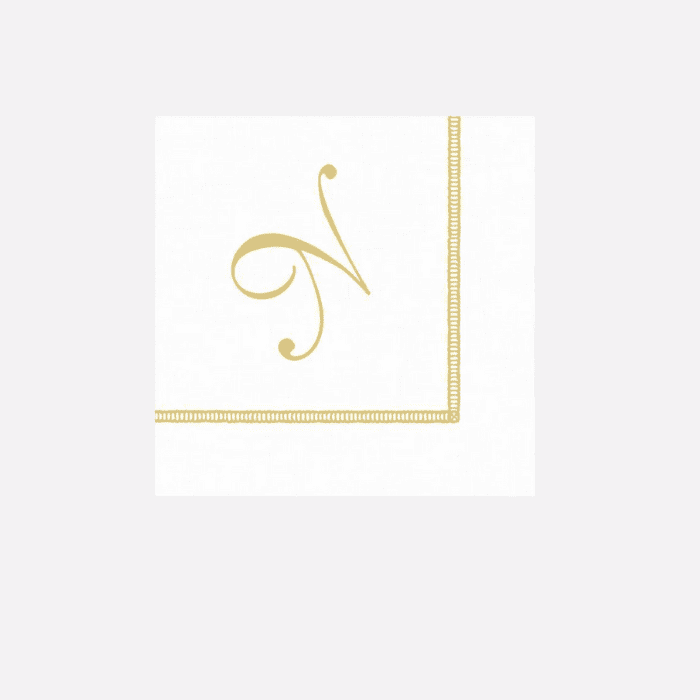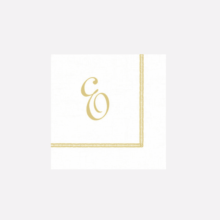 Servilletas de cóctel en papel con iniciales doradas. Vienen en packs de 20 unidades.