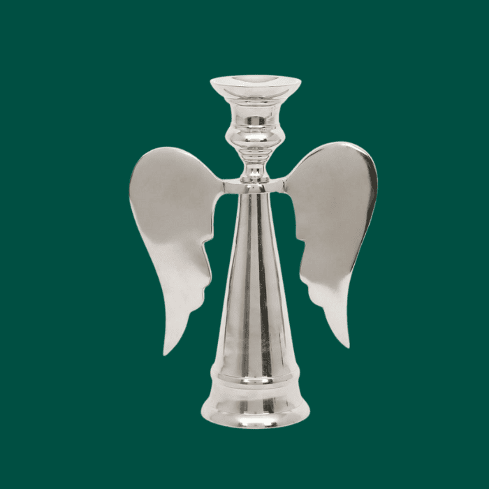 Candelabro plateado con alas ángel