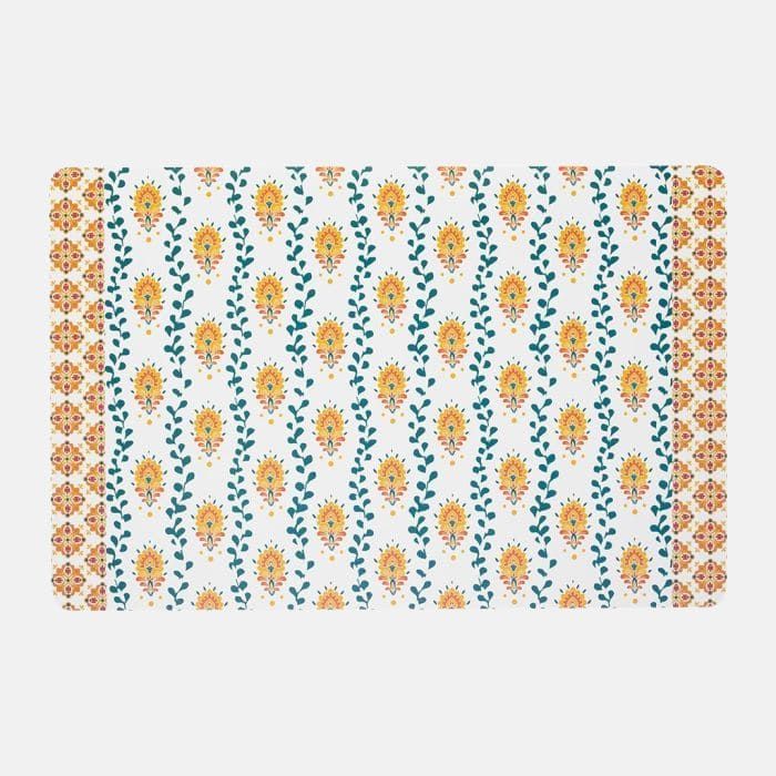 Individual de flores plastificado. Es perfecto para el uso diario ya que con un simple paño húmedo se limpia con facilidad.