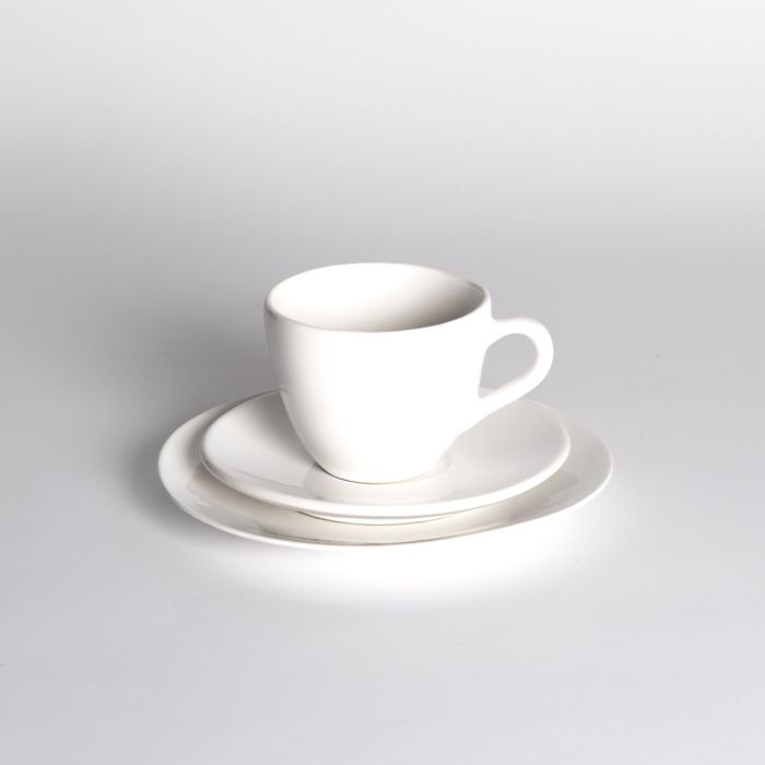 Juego de desayuno en blanco. La taza incluye platito. Realizada en nuestros talleres de Portugal. Cada plato es único, se fabrican y se pintan uno a uno siguiendo la tradición de alfarera local. Al ser un producto artesanal el color puede variar a veces entre plato.