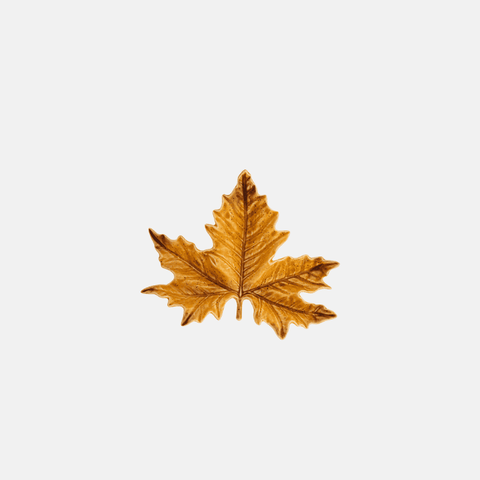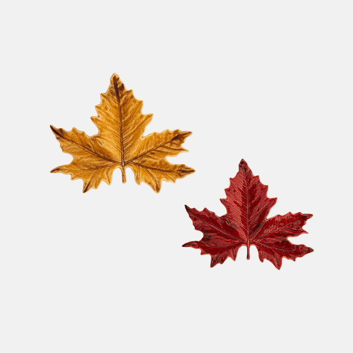 las hojas de platano pequeñas han sido diseñadas exclusivamente por Claudia Schiffer para Bordallo Pinheiro, es una obra de arte inspirada en la naturaleza otoñal. Con una forma que evoca delicadas hojas caídas, esta pieza de loza se distingue por sus tonos rojizos y amarillos, capturando la esencia de la estación con una elegancia atemporal. Perfecto tanto para decorar como para servir de aperitivos combina funcionalidad y estilo, reflejando la colaboración entre la célebre modelo y la icónica marca Bordallo Pinheiro, famosa por sus diseños artísticos y llenos de vida