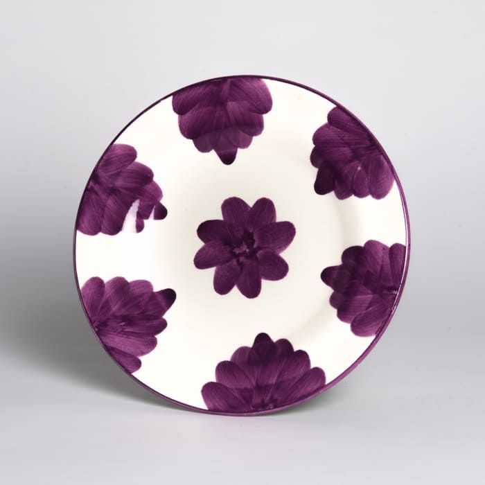 Plato llano de 24cm de barro esmaltado, pintado a mano.